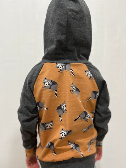 Raccoon/ gray hoodie 9-12 months